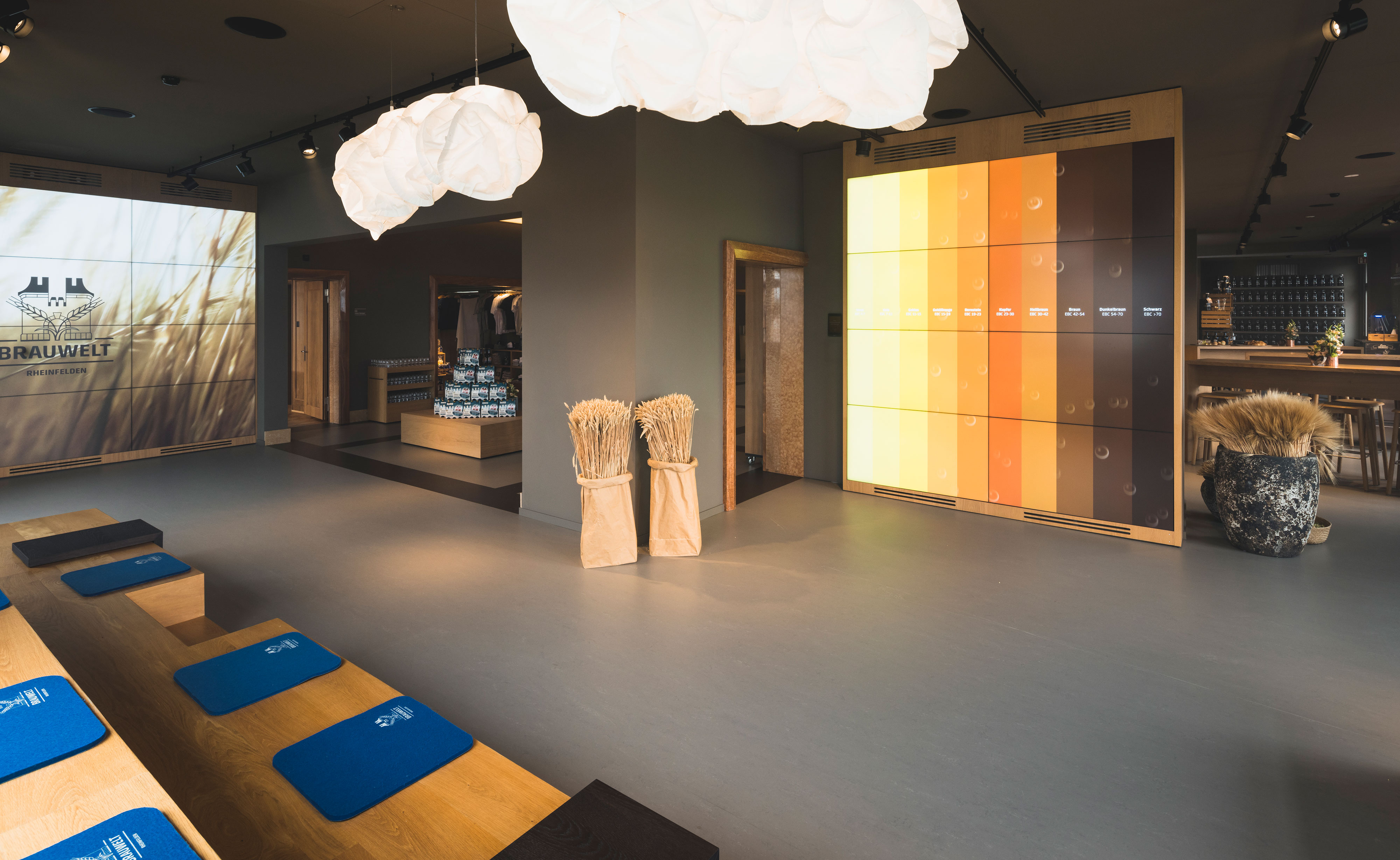 Im Obergeschoss des Besucherzentrums durchlaufen Sie in der neuen Ausstellung den Brauprozess und brauen ganz nebenbei ein eigenes virtuelles Bier.